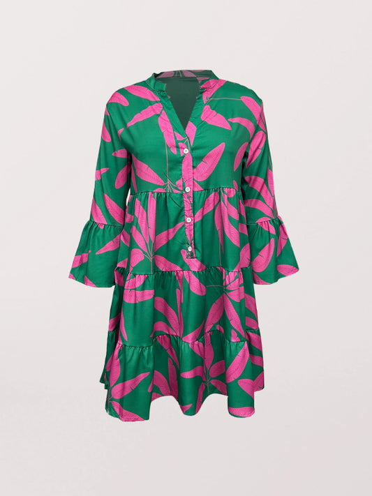 Floral Smocked Balloon Sleeve Round Neck Blouse