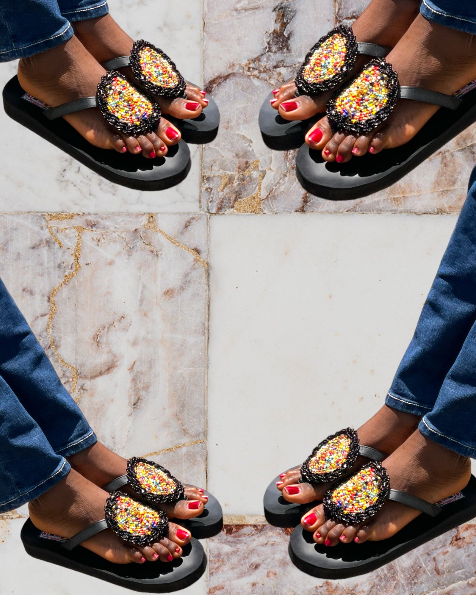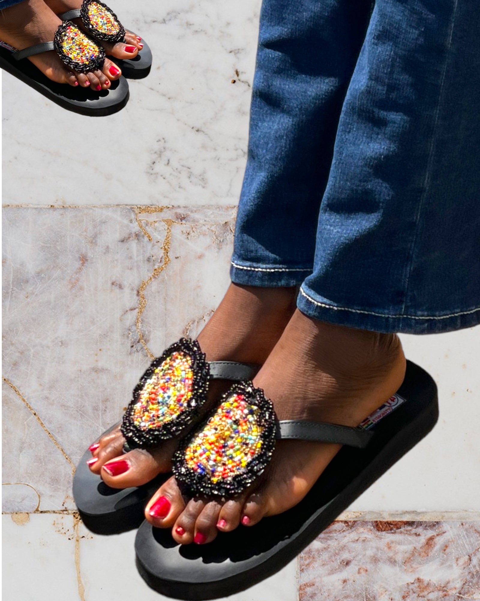 Sunset Colorful Beaded Slippers are adorned with Masai tribal beads which brings out the artistic beauty. Perfect for casual outings, a day at the beach or simply wear at home.